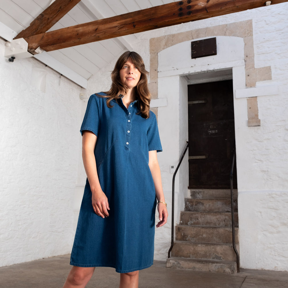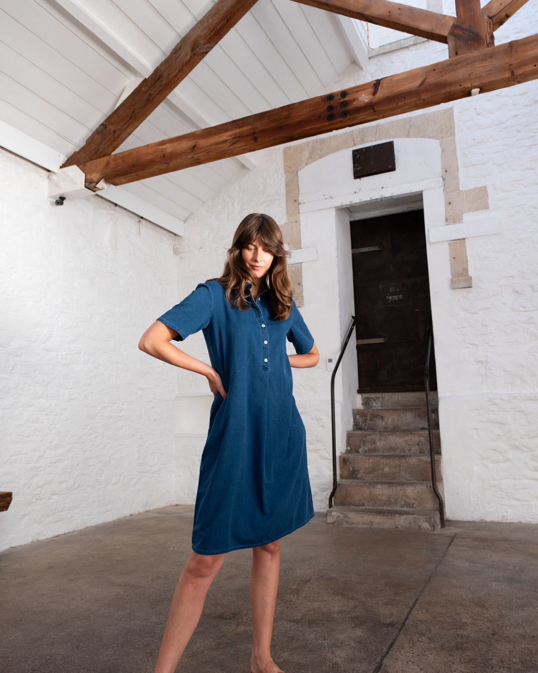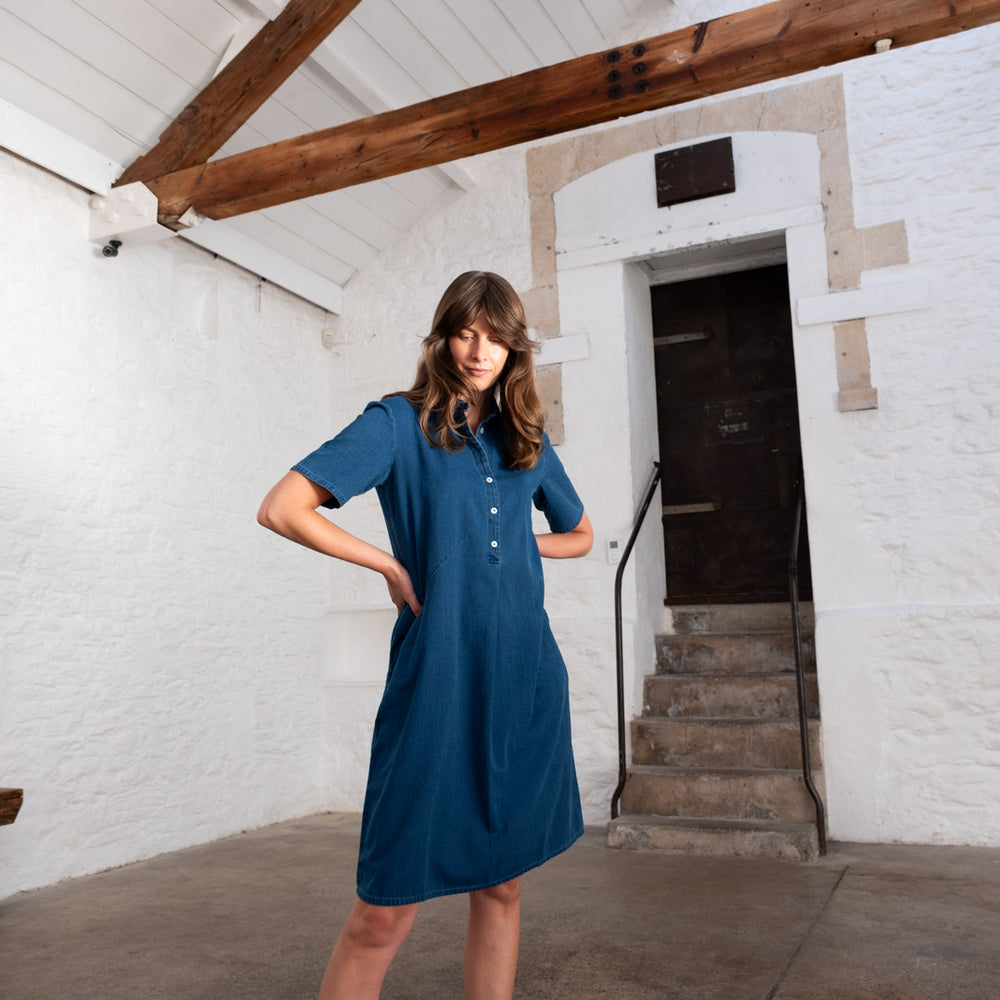 Regular price £79.00The Alexa Shirt Dress is a BIBICO favourite that sells out every season. Made from our iconic indigo blue textured denim, this short-sleeve dress is designed for ease and versatility, making it the perfect addition to any wardrobe. A carefully designed silhouette for leisurely days in the sun.