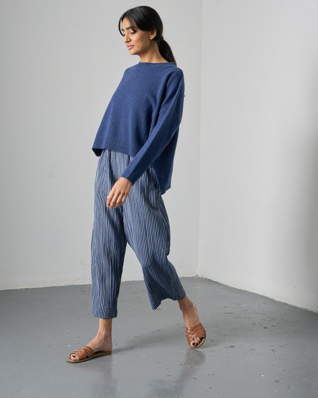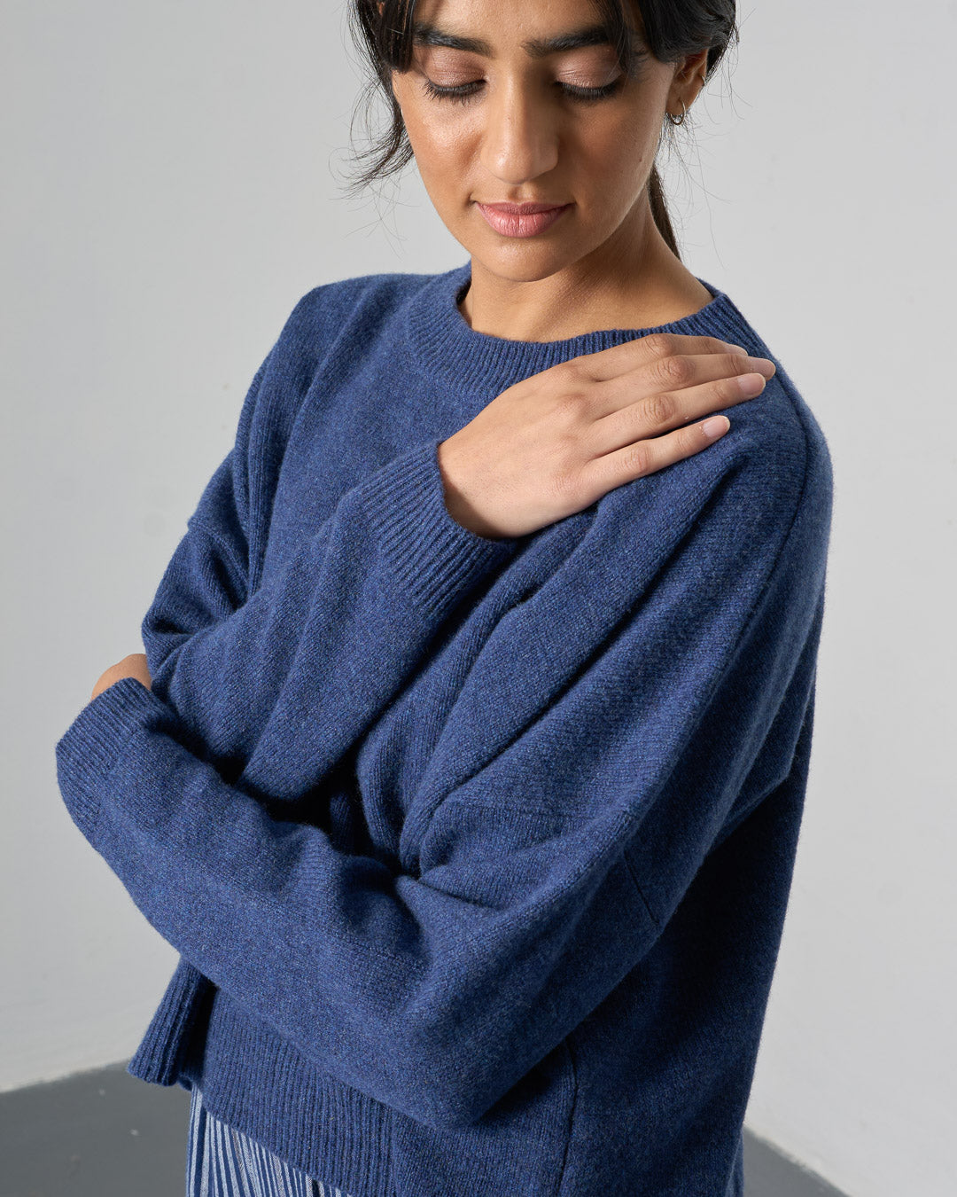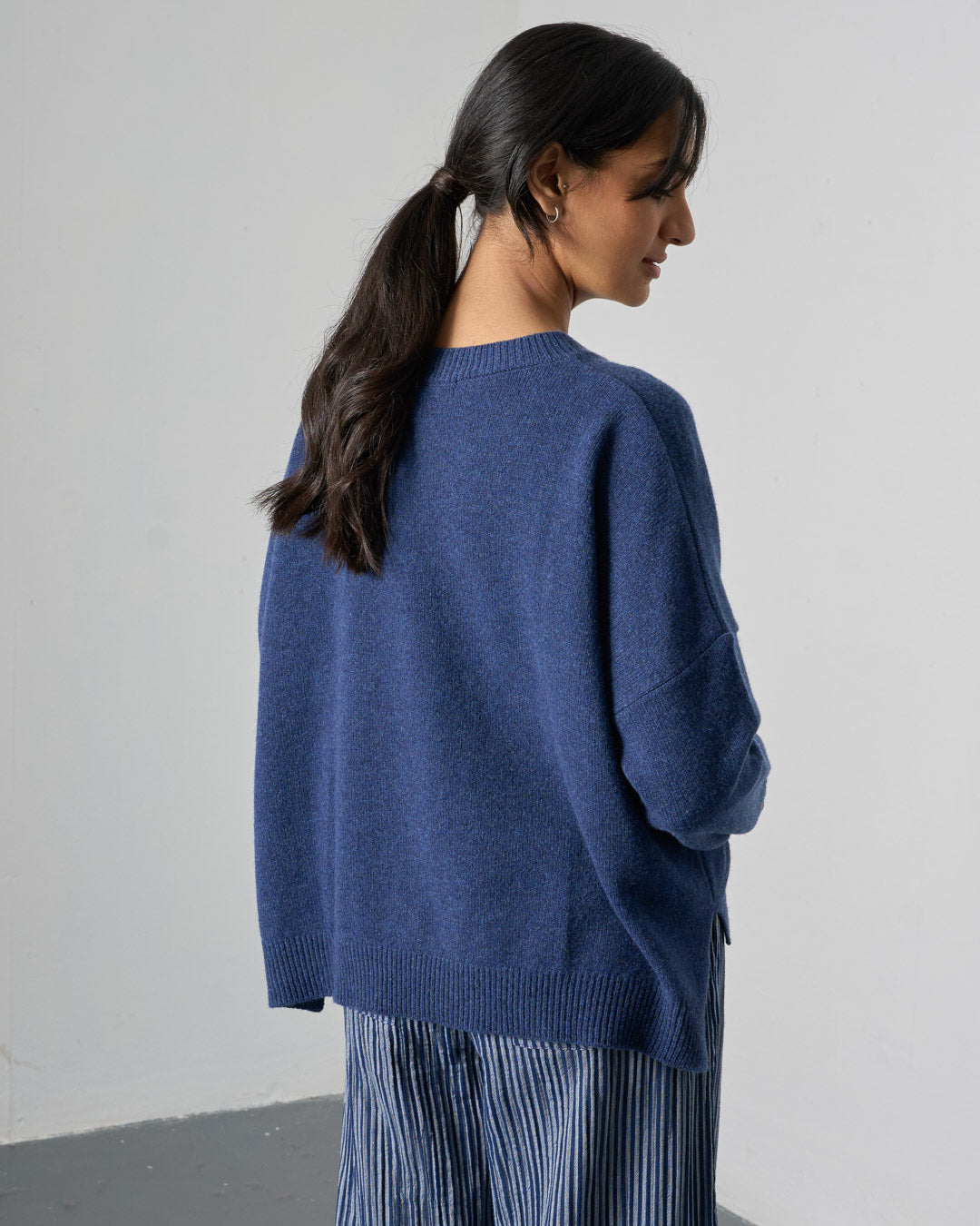 Boxy, relaxed jumper made from mid-weight pure merino lambswool, spun at a Yorkshire mill. Designed with a simple round neckline, drop shoulders, and ribbed detailing at the cuffs and hem, with small side splits for ease. Soft, breathable and warm, this is a lighter knit that gives warmth without feeling heavy, it works well year round.