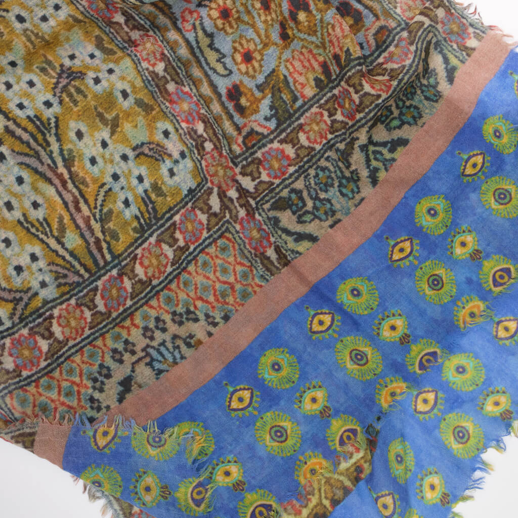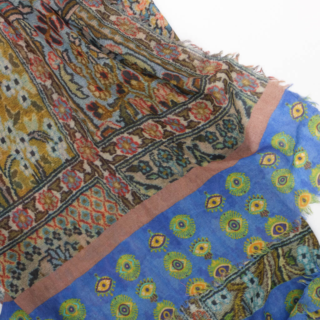Striking digitally printed scarf with a stunning array of colours and patterns throughout. Fine, pure wool scarf with a deliciously soft & luxury feel.