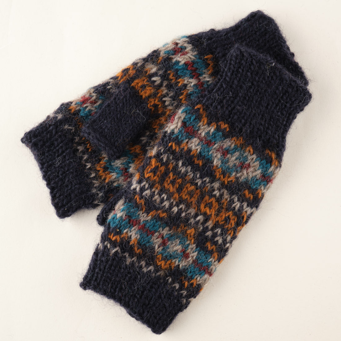 Warm, cosy fingerless mittens with a fair isle pattern. 100% Wool.