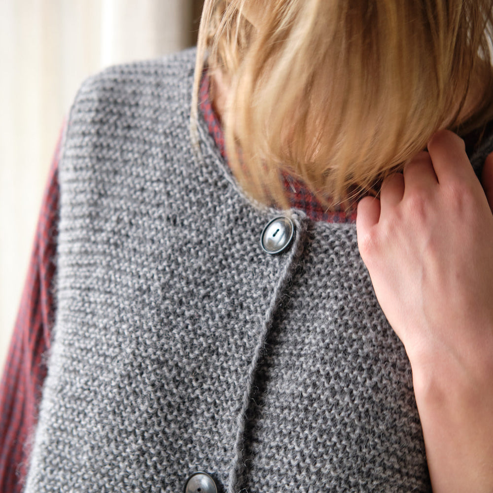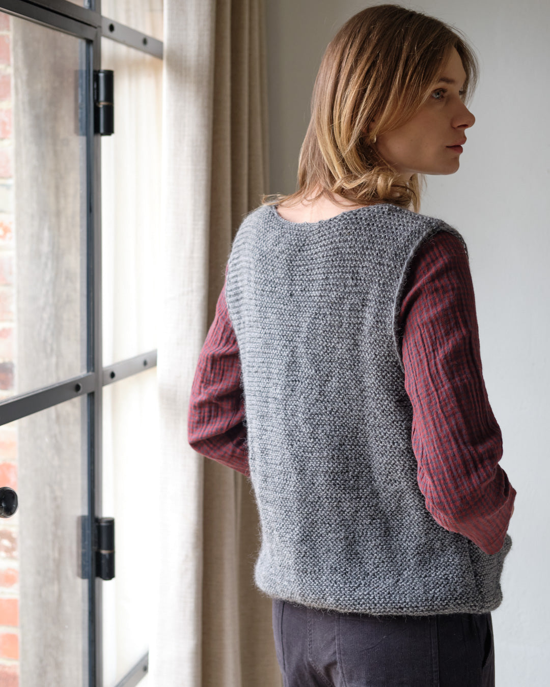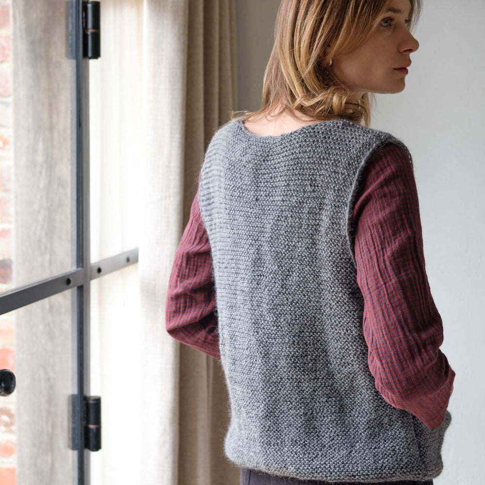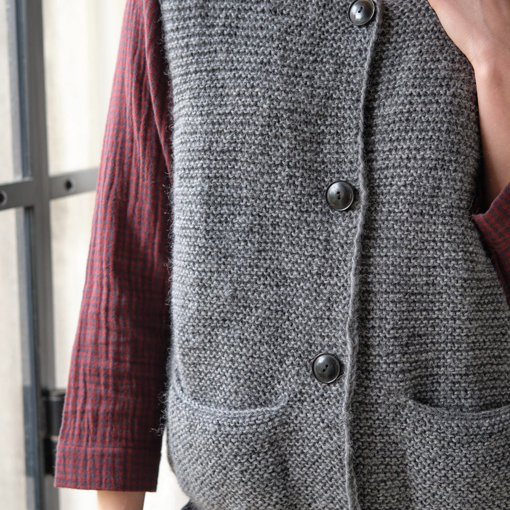 We love the simplicity of this hand-knitted gilet. Skilfully crafted in Nepal from pure new wool, this vest is made in a chunky garter stitch and has an easy, relaxed shape. It features inverted pockets and sustainably sourced engraved buttons. The special yarn is completely natural - undyed and untreated, and brings you new wool's unique, naturally insulating qualities. This simple vest will become an everyday layer to keep you warm. What makes these knits truly special is the artistry behind them. Each one is meticulously crafted by skilled artisans, often in their own homes, taking a week to complete – they are the essence of slow fashion. We honour their exceptional craftsmanship with a signature on the label, making each vest a unique piece that blends quality and personal touch.